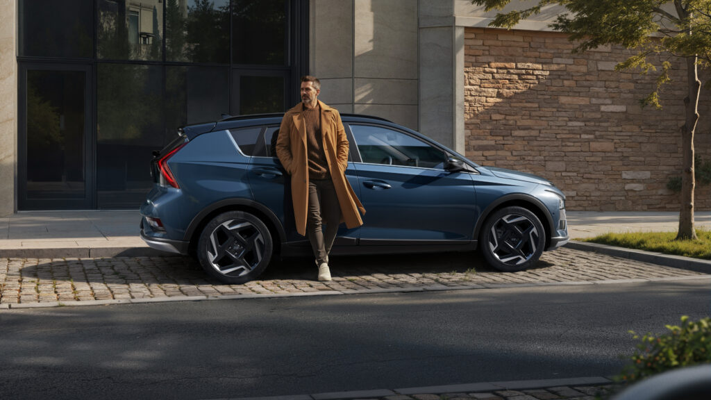 Hyundai Bayon har en modern och uttrycksfull design som direkt fångar blicken, med skarpa linjer och tydliga SUV‑proportioner. Den distinkta fronten med Seamless Horizon LED‑ljus, bred grill och pilformade ljusdetaljer ger bilen ett självsäkert och futuristiskt uttryck. Invändigt möts du av en stilren och genomtänkt interiör med elegant instrumentpanel och valbar ambient belysning som skapar en trivsam och personlig körmiljö.